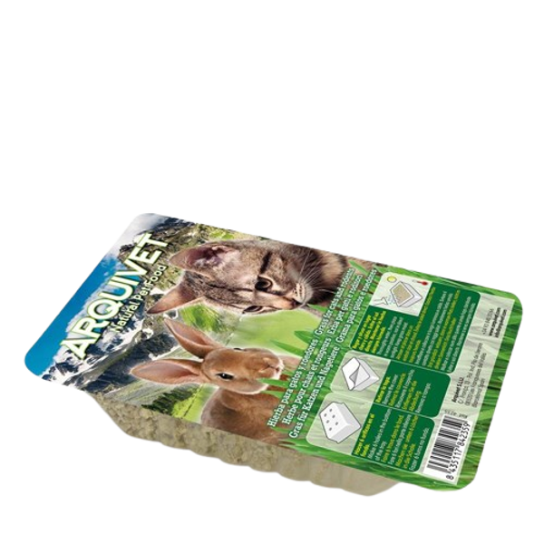 Bandeja con semillas de hierba gatera.